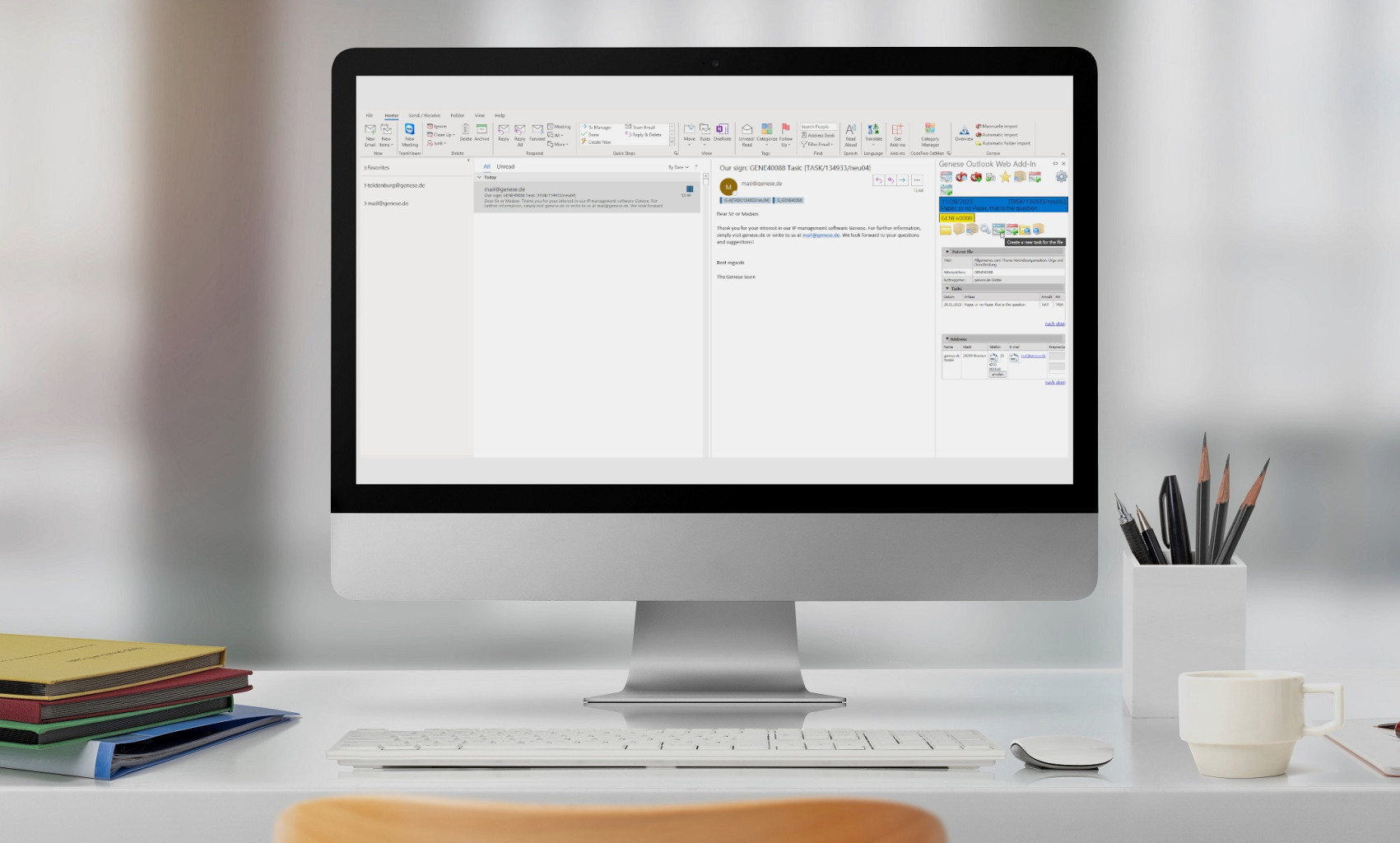 Activating the EWS service opens up new, time-saving ways for you to have all the important Genese functions directly at your fingertips in your Outlook environment. Whether you use the file preview or need the deadline overview – you have full access to all relevant areas for your correspondence.